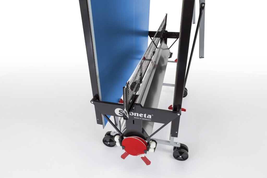 De nieuwe Sponeta S 3-47e is een outdoor tafeltennistafel die bestendig is tegen alle weersomstandigheden. Verder heeft de tafeltennistafel een stevig onderstel en beschikt over de professionele afmetingen, waardoor deze tafel ook geschikt is als professionele trainingstafel. Daarnaast is deze tafel ook verrijdbaar en inklapbaar.