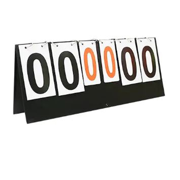 Tafel scorebord met dubbele nummering van 0 tot 99 op grote kaarten (17,5x7,5cm) en van 0 tot 9 op kleine kaarten (12,5x5,5cm).
