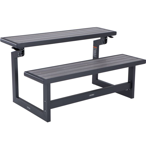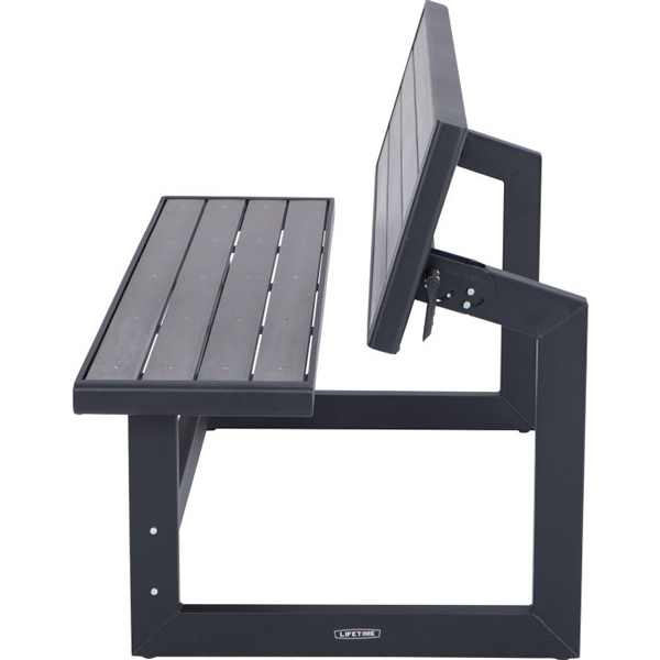 Met deze Lifetime bank heb je de sfeer van een houten bank zonder al het gedoe van onderhoud. De Lifetime bank is namelijk gemaakt van UV-en weerbestendig kunststof met een prachtige hout-look afwerking in harbor grey. Het zwarte stalen frame van de Lifetime convertible bank heeft een gepoedercoate, roestbestendige afwerking. Met 2 banken is de set om te bouwen tot een grote picknicktafel.