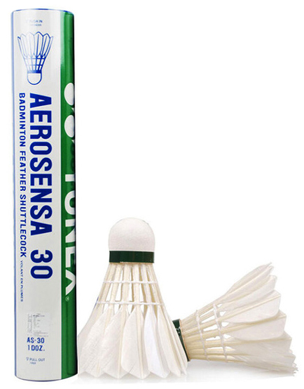 De Yonex Aerosensa 30 is een veren shuttle (ganzenveer) en is een wedstrijd shuttle. De kurken dop zorgt voor goede vlucht eigenschappen. Speed 3. Koker van 12 shuttles.
