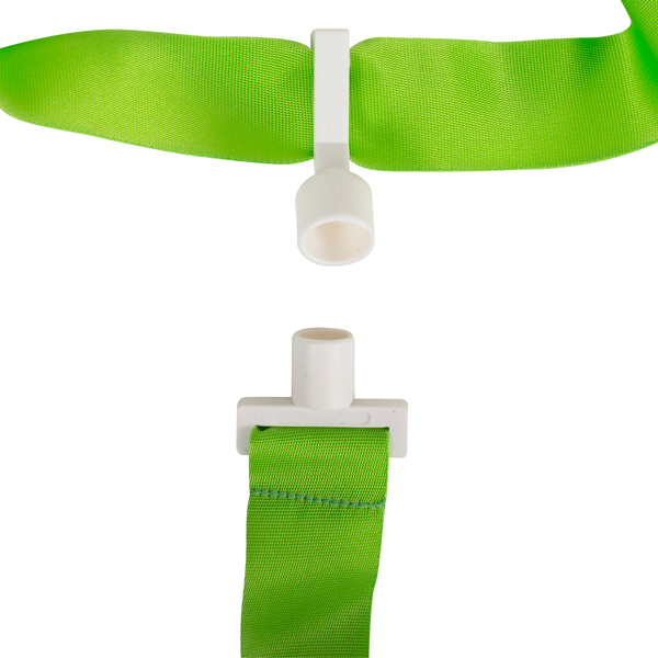 Set van 12 riemen, 6 geel en 6 groen. Elke riem bevat twee vlaggen. Riemlengte: 115 cm. Vlaggengrootte: 42x4 cm.