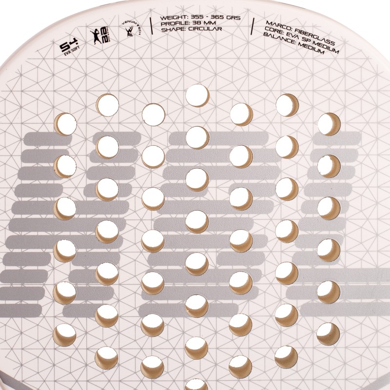 De glasvezel constructie – zowel in het blad als het frame – zorgt voor extra flexibiliteit en speelcomfort. Dit maakt het racket vergevingsgezind bij minder zuiver geraakte ballen, ideaal voor beginners die hun techniek nog ontwikkelen. De EVA-kern dempt trillingen effectief en geeft een aangenaam balgevoel met voldoende kracht.