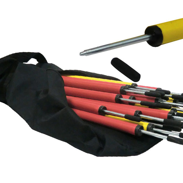 Set van 30 slaomstokken stokken met een lengte van 160 cm. 15 x in de kleur geel en 15 x in de kleur rood.