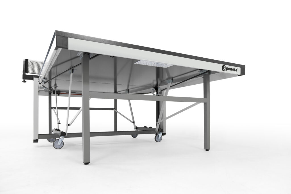 De Sponeta S7-63i Tafeltennistafel is door de ITTF erkend als een officiële wedstrijdtafel. Dit betekent dat deze speeltafel bij evenementen of toernooien officieel ingezet wordt. De tafeltennistafel heeft een speelblad dikte van maar liefst 25 mm. Dit zorgt voor een uitermate goede stuiter van de tafeltennisbal. Een goede stuiter zorgt voor optimaal speelplezier! Verder is de tafeltennistafel ook verrijdbaar en inklapbaar.