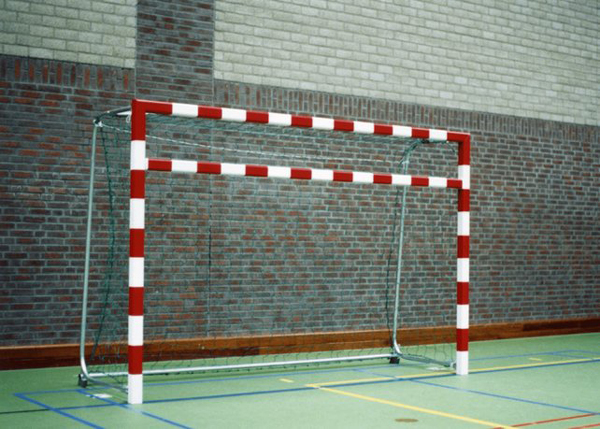 Rood wit geblokte lat om het handbaldoel gemakkelijk te verkleinen. Door het aanbrengen van deze lat wordt het doel verkleind naar 300x160cm.