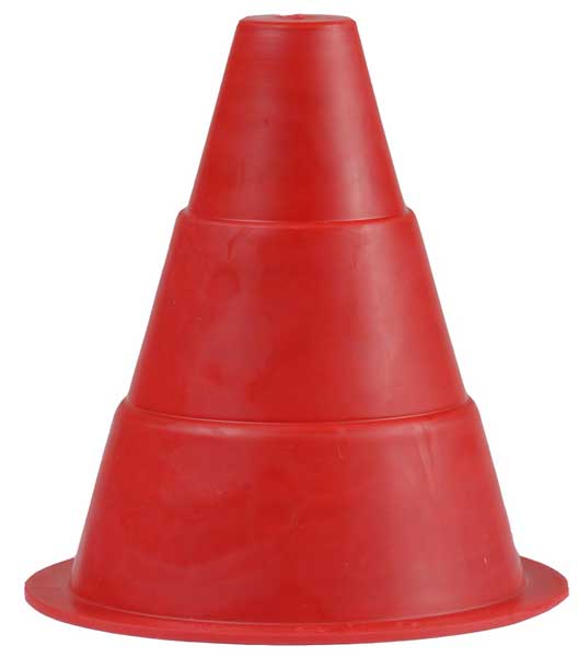 Afbakenkegel van 15 cm. Gemaakt van extra soepel materiaal, behandeld tegen UV straling. Kan volledig ingedrukt worden, wat de veiligheid ten goede komt.