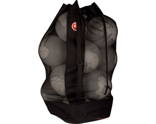 Rand voorzien van koord met koordstopper. Twee verstelbare draagbanden. Afmeting: 92 cm lang, Ø 47 cm. De ballentas heeft een ruimte voor ca 12 tot 15 ballen.