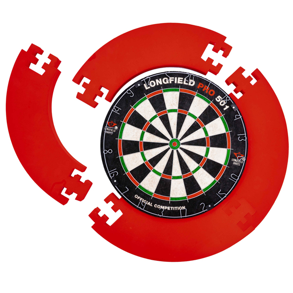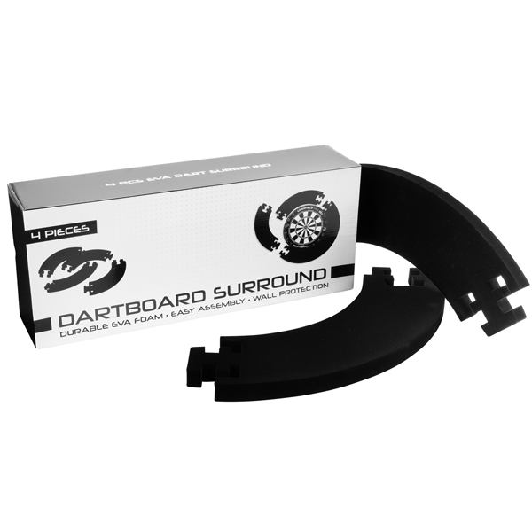 Beschermrand voor rondom een dartbord. Gemaakt van foam. Deze ring bestaat uit 4 delen die als een puzzel in elkaar vallen en biedt bescherming van de achterwand tijdens het darten. Exclusief bord.