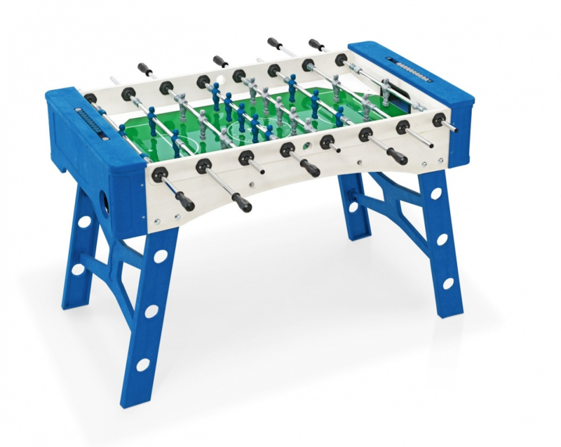 Deze tafel is in de kleuren blauw en wit afgewerkt en heeft een hoge kwaliteit speelplaat van veiligheidsglas. Officiële wedstrijd afmetingen en een meubel vervaardigt is uit een innovatief bestanddeel van high-tec plastic met fibreglas, roestvrijstalen schroeven en bouten. Gegoten poppen, onverwoestbaar en met de doorlopende stangen. Afwijkende vrachtkosten.