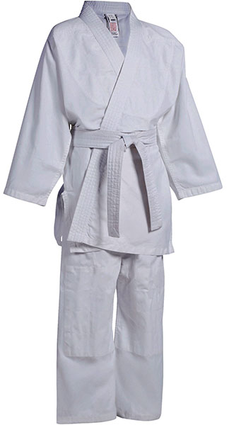 Zeer stevig judopak met wafelmotief van zware kwaliteit gebleekt katoen. Inclusief een witte band. Al vele jaren in ons assortiment.