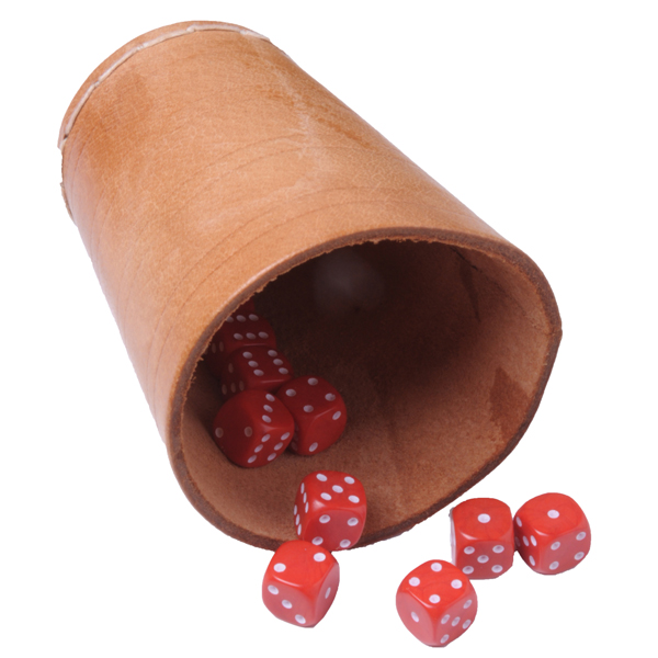 Dobbelbeker van naturel tuigleder, ongevoerd.
