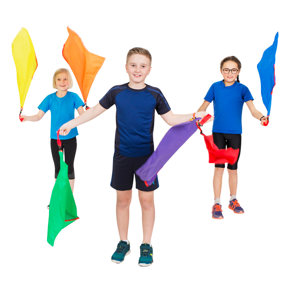 De rhythm flags zijn een prima ondersteuning bij coördinatie oefeningen, maar ook ideaal om met kleuters de grove motoriek te oefenen. Tevens kunnen de Rhythm Flags gebruik worden om mee te gooien, het pitten zakje bepaalt hierbij de richting. Set bestaat uit 6 verschillende kleuren vlaggen met een handvat. Afmeting: 50 x 50 cm.