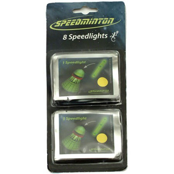 Speedminton Speedlights | set van 8 stuks. Voor een spannend spel in het donker! Meteen nadat een speedlight is geknikt, geeft het tot 3 uur lang licht en kan in een Night Speeder® gestoken worden. De Speeder® licht hiermee in zijn geheel op. Daardoor is het uitstekend geschikt voor een spel in het donker op de camping, 's avonds in het park of op het strand. De verpakking bevat 8 speedlights.