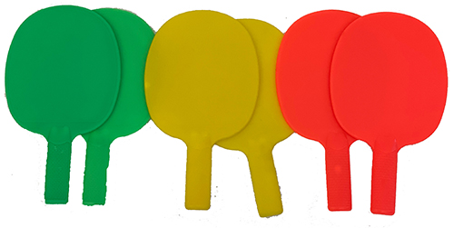 Op zoek naar een robuust en praktisch tafeltennisbatje? Zoek niet verder dan deze kunststof batjes! Gemaakt uit één stuk, hierdoor zijn deze batjes bijna niet stuk te krijgen. Ideaal voor thuis, op scholen, kinderdagverblijven, of als uitleen voor bedrijven. En als u klaar bent met spelen, zijn deze batjes ook nog eens super gemakkelijk schoon te maken. Batje is bijna onbreekbaar en weersbestendig.