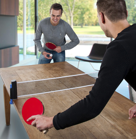 Complete tafeltennisset, maak van de meeste tafels in een handomdraai een tafeltennistafel. Ideaal voor scholen, kinderdagverblijven, thuis, in de tuin op op de camping!