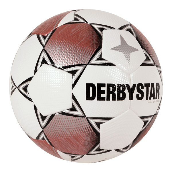 De voetbal Derbystar Prof GOLD is een kwalitatief zeer sterke bal in het de kleuren wit met goud. De bal is vervaardigd uit hoogwaardig PU-materiaal en brengt uitstekende vluchteigenschappen met zich mee.
