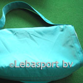 Draagtas voor koersballen in een doos. De tas is gemaakt van stof en heeft een draagriem.