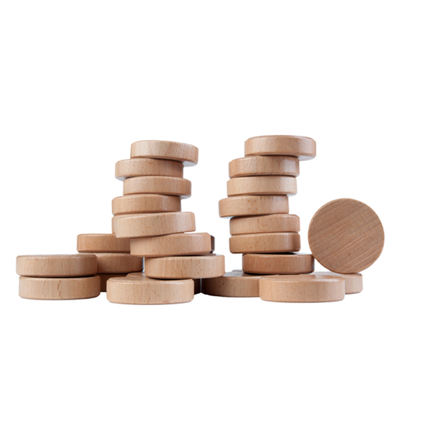 Set van 30 stuks holgedraaide wedstrijd sjoelschijven. Ø 50 mm. Gemaakt van beukenhout.