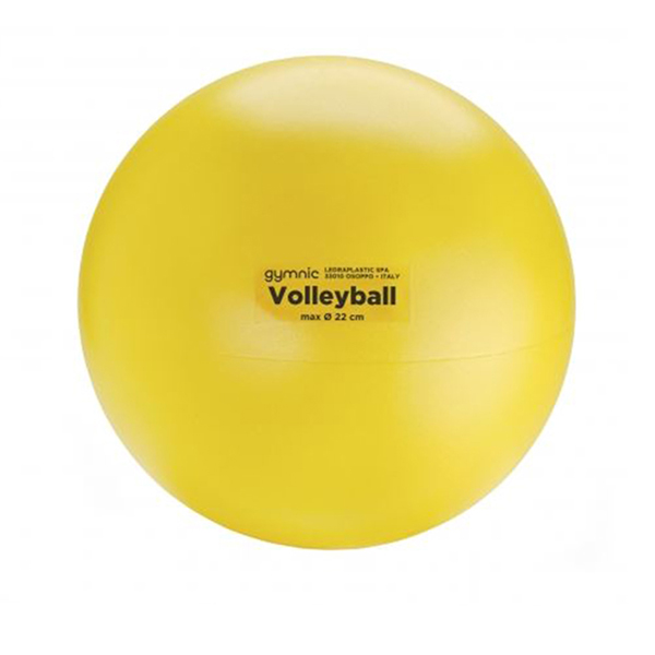 Een bijzonder zachte speelbal, volleybal afmeting Ø 21 cm, in de kleur geel. Gewicht ca. 240 gram. De speelbal is oppompbaar