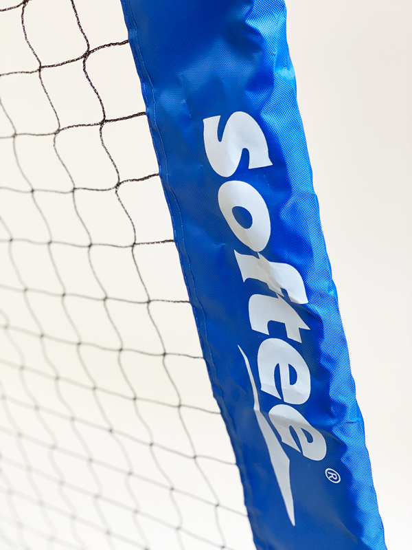 De set staat snel in elkaar door de elastische rubberen lijn die door alle metalen buizen loopt en met elkaar verbonden is. Opbergen in de draagzak en je net staat niet in de weg. Eenvoudig mee te nemen naar het strand of op vakantie maar ook zeker te gebruiken op het schoolplein.