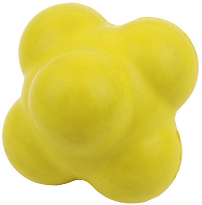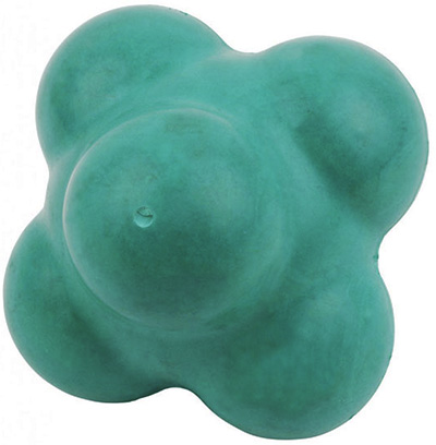 De Reactie bal of ook wel knobbelbal is perfect voor agility training, zowel individueel samen. Het unieke zeshoekige ontwerp geeft de speed reaction bal een stuiter die onbekend van richting en hoogte is. Ø 10 cm. Train de coördinatie tussen handen, ogen en voeten. Verkrijgbaar in 4 kleuren: blauw, rood, geel en groen.