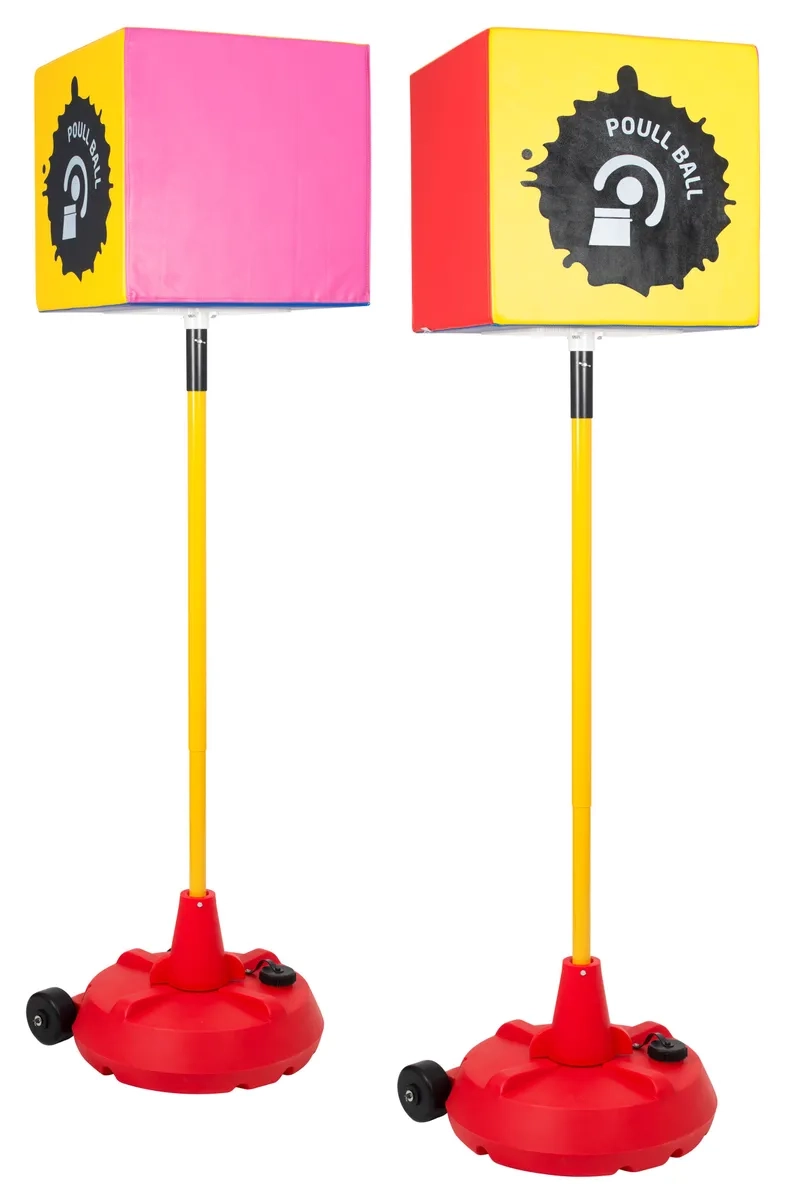 Poull Ball is een dynamische balsport waarbij twee teams proberen te scoren door een grote bal van een pilon (kegel) te gooien. In plaats van te mikken op een doel of ring, probeer je de bal bovenop de kegel van de tegenstander eraf te werpen.
