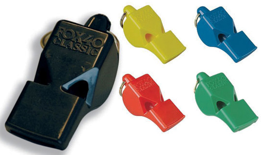 ABS scheidsrechter fluitje, geeft heel hoog geluid, produceert door de 2 luchtkanalen. De Fox40 heeft dus geen kurk of plastic balletje in de fluit. Verkrijgbaar in verschillende kleuren.